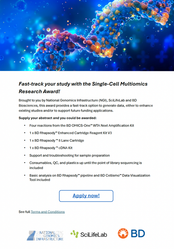 NGI, SciLifeLab and BD Biosciences are excited to announce the launch of a Single-Cell Multiomics Research Award!