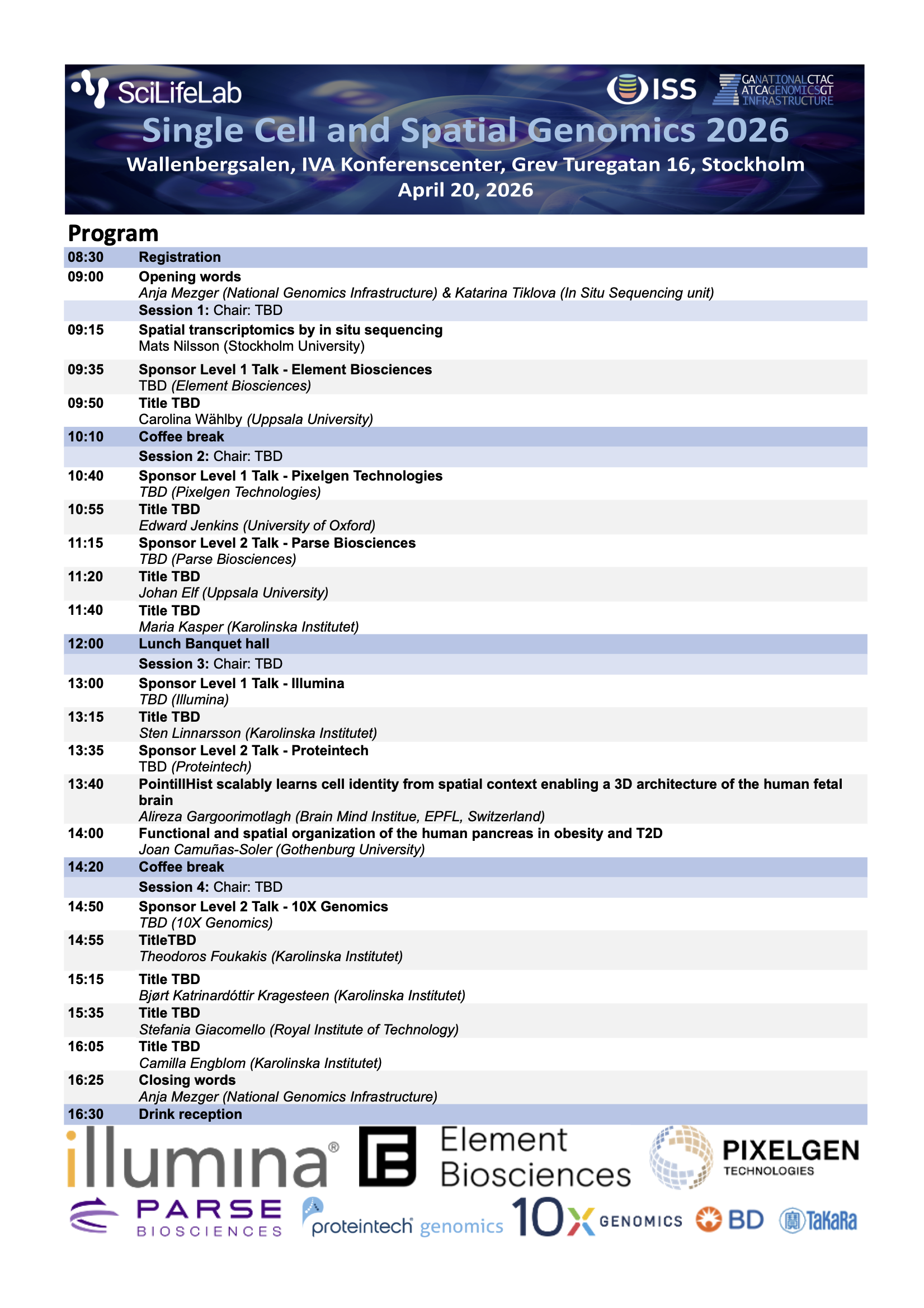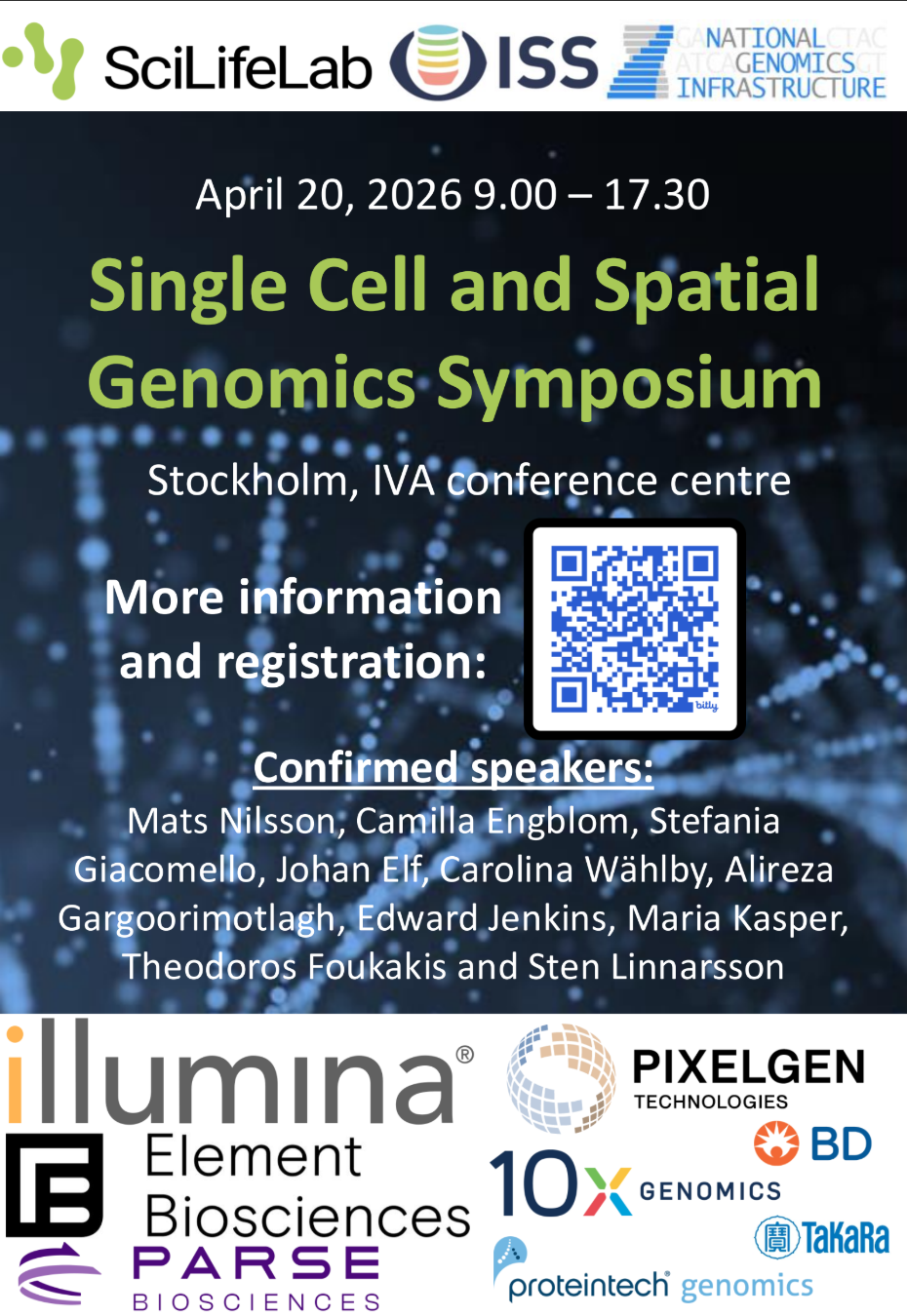 By fostering knowledge exchange and community building, the symposium aims to accelerate the adoption of single-cell and spatial genomics approaches across Sweden and further strengthen the national research ecosystem supported by SciLifeLab and NGI.