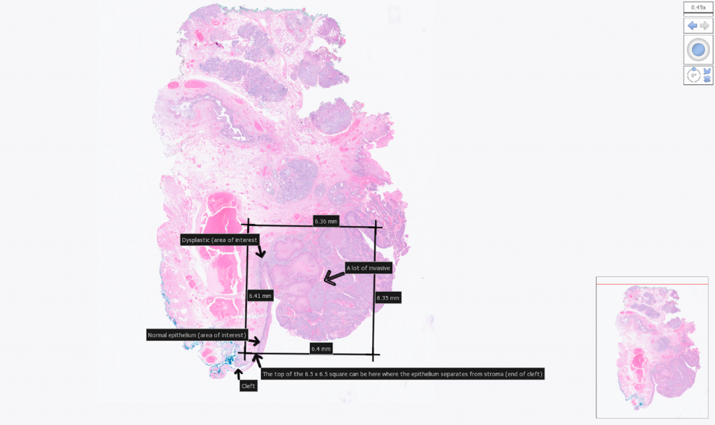 - You need to send us high resolution images of H&E stained sections adjacent to the samples as previously described, clearly highlighting the area of interest (see example above). We will not be able to evaluate the quality of the staining with low resolution images.